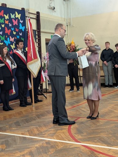 Ten wyjątkowy dzień był również okazją do pożegnania. Z wielkim wzruszeniem pożegnaliśmy Panią Marię Jakuszyk, która po wielu latach poświęconej pracy przeszła na zasłużoną emeryturę. Dziękujemy Pani Mario za lata nauczania, pasji i serca włożonego w wychowanie pokoleń! Życzymy, by czas na emeryturze był pełen spokoju, radości i realizacji wszelkich marzeń!